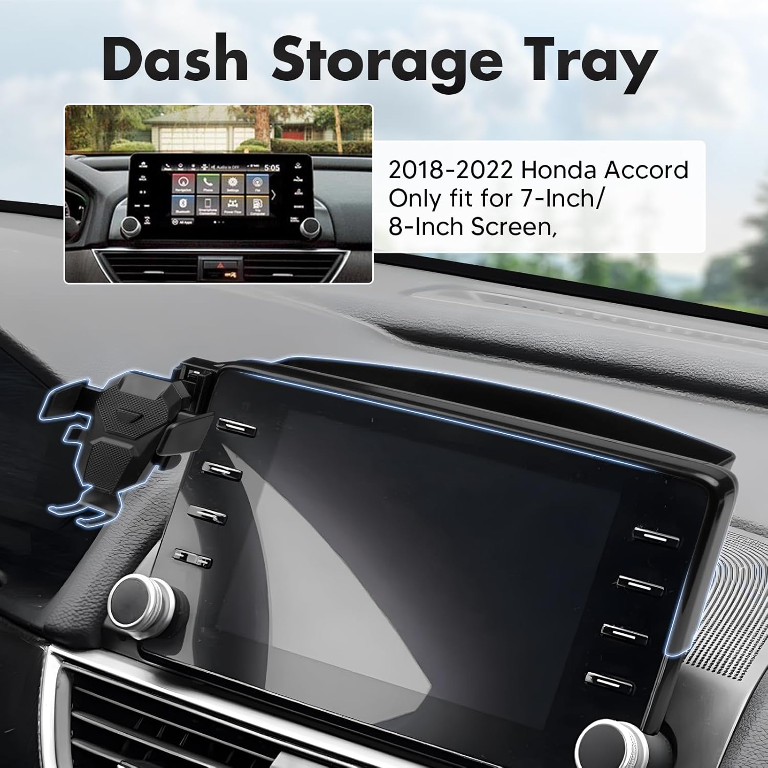 - Phone Holder for Honda Accord: Our Phone Holder with Dash Organizer is fits for 2018 2019 2020 2021 2022 Honda Accord (Fit 8" Touch Screen). And the phone holder compatible with iPhone and Android all smartphones.