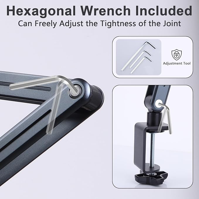 - Portable & Lightweight: With dimensions of 13.4 x 9.25 x 1.77 inches and a weight of just 2.23 lbs, this portable book stand with clamp is both portable and easy to store in a drawer or on a shelf. Note: Please use the included hex wrench to increase the tension on both connectors