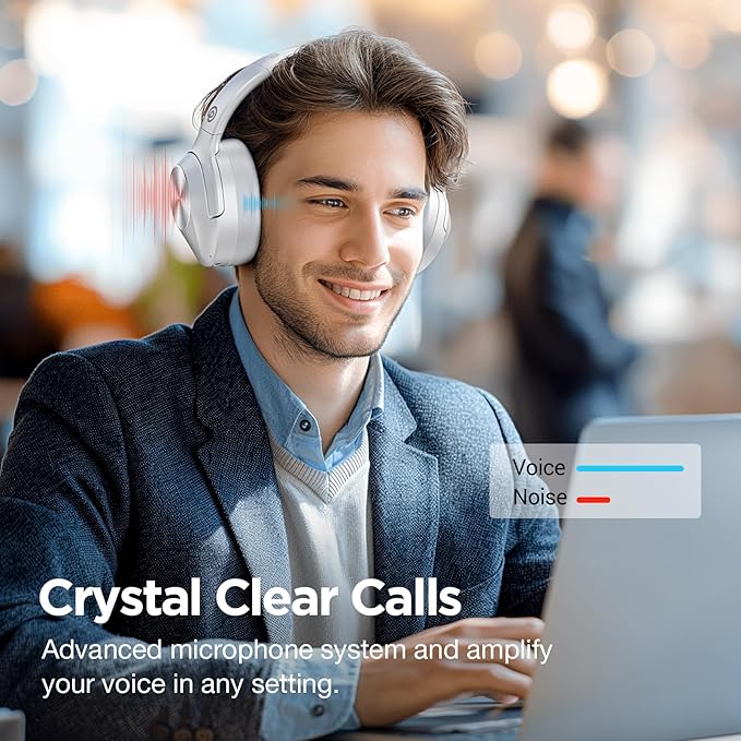 - Crystal Clear Hands-free Calls: Advanced microphone system precisely filters noise for crisp, clear call performance. These active noise cancelling headphones with ENC tech can catch your voice accurately and block background noise for perfect clear calls. Vibeadio wireless Bluetooth headphones make stable clear Hands-free calls which is convenient for home office/study.