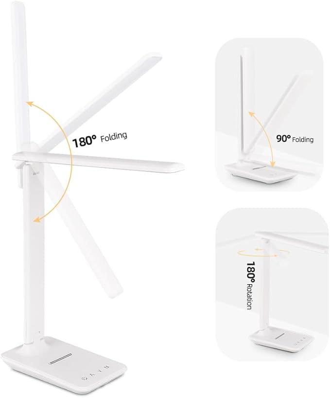 LED Desk Lamp for Home Office, USB Charging Port, Dimmable Table Lamp, Foldable Table lamp, Touch Control, 5 Lighting Modes, University Dormitory Eye Protection Learning Reading Lamp (White)