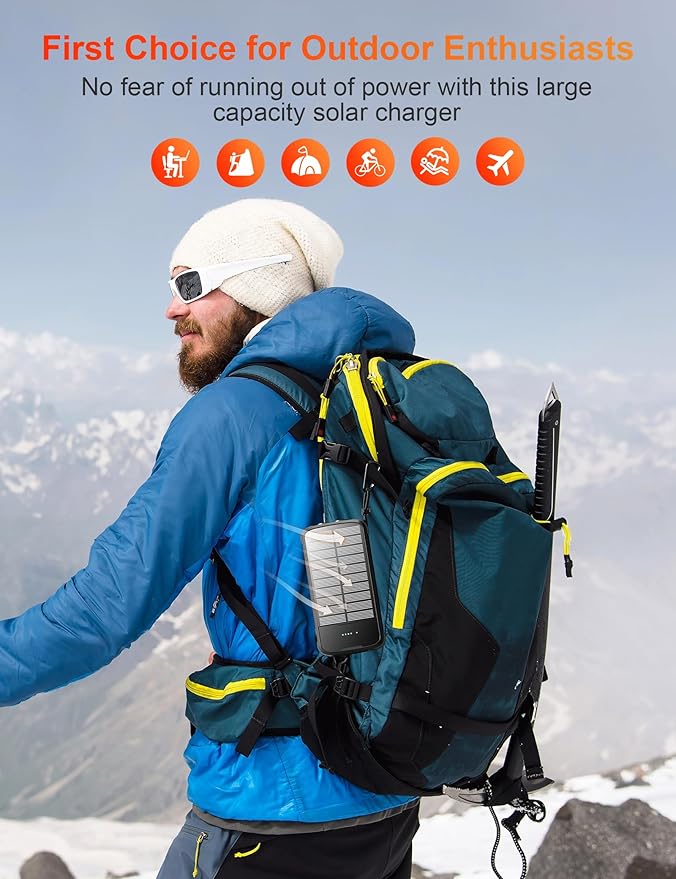 - Sturdy & Durable Design for Outdoor: The solar power bank is made of sturdy ABS material, with anti-fall thick silicone in each corner. The charging port is also protected by a silicone cover. Anti-fall/dustproof/waterproof design, playing an important role in outdoor emergencies, if you are an outdoor enthusiast, don't miss this power bank