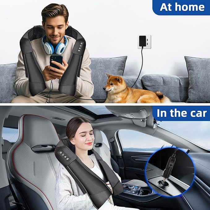 - Removable And Washable Cloth Cover: A removable and easy-to-clean cloth cover is included, while reduces the intensity and heat of back massage. Neck massager with an ac adapter and a car adapter, Allowing you to enjoy a deep tissue massage at home, in the car or in the office
