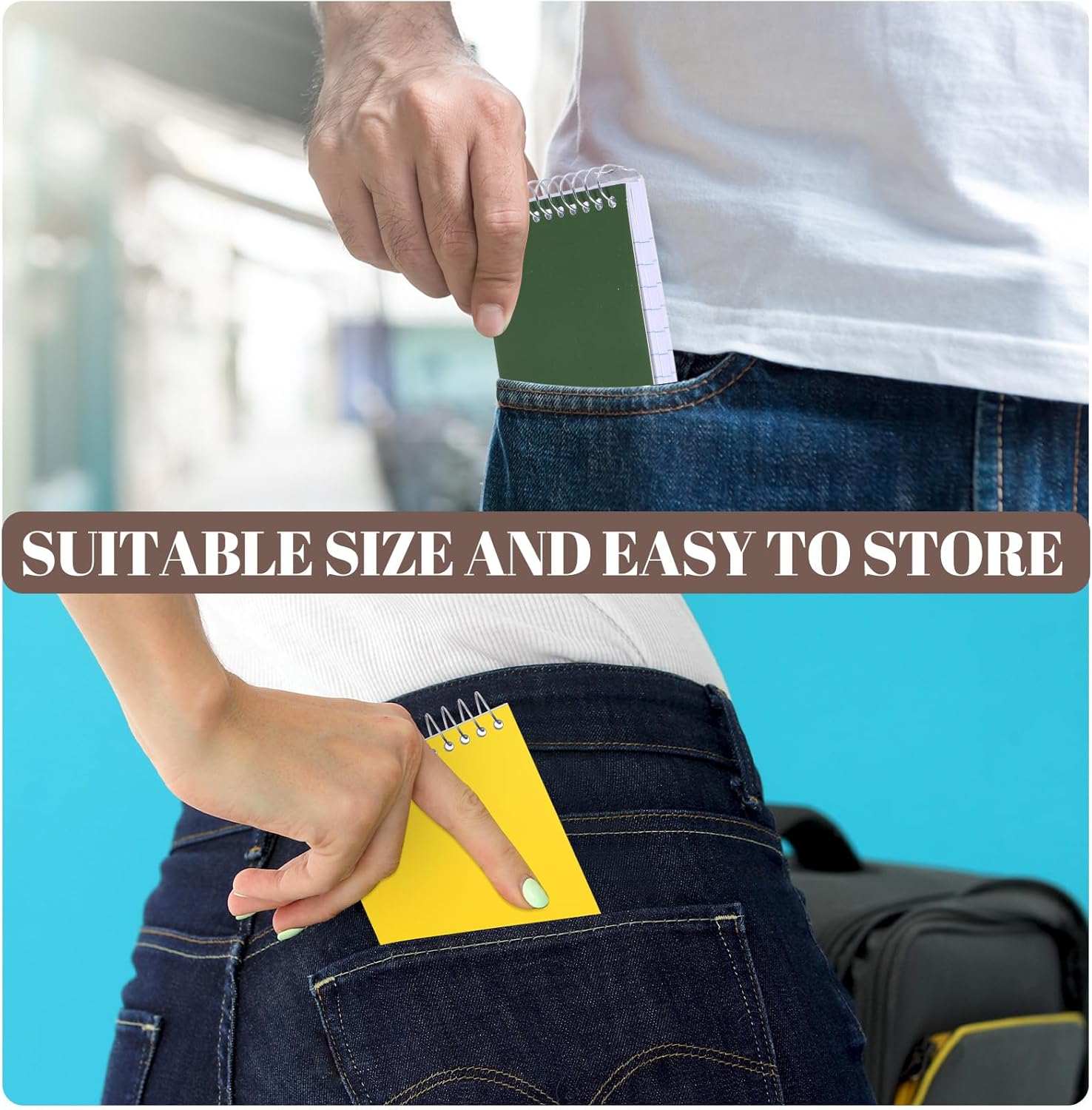 - Top Spiral Bound: each pocket memo pad adopts top spiral binding, so the page can lay flat for a more comfortable writing condition for right or left handed users; And the unobstructed spiral binding design won't hang up on clothes or backpacks, very thoughtful