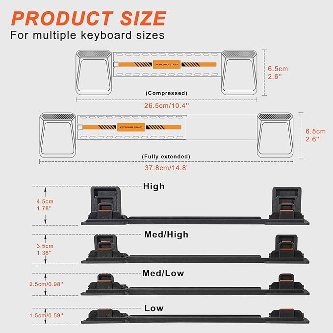 - 4-ANGLE HEIGHT ADJUSTMENTS: Boost comfort with four height options on our computer keyboard stand riser, optimizing keyboard angle to reduce wrist strain and enhance ergonomics in any setting