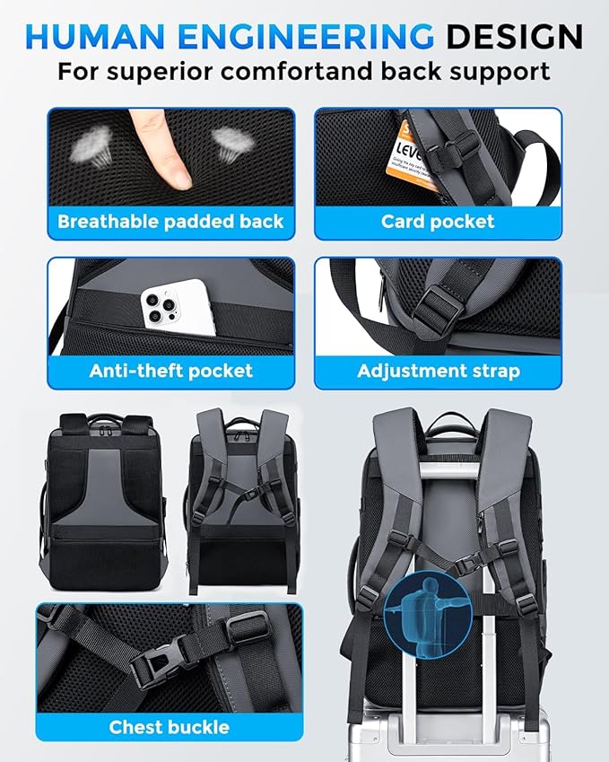 - 【Durable Carry on Backpack】The Grey business travel backpacks are made of high quality durable abrasion, scratch, and water-resistant 900D Oxford materials, which can provide protection on drizzle days. Internal wet pocket in our carry-on backpack to protect your goods from water.(Zippers not waterproof)