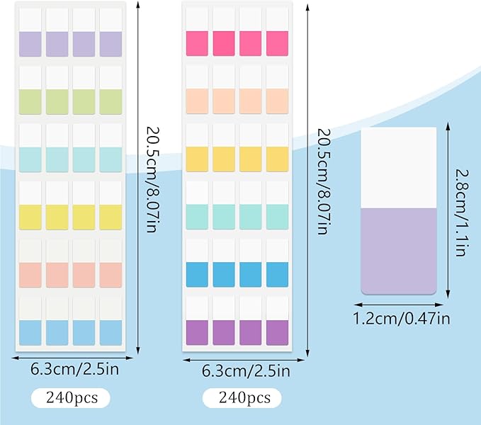 - Package Includes: 480 pieces of sticky index tabs, a single small label size is 0.5×1 inch, 2 sets of different colors, bright colors, multiple choices, which can meet your different needs