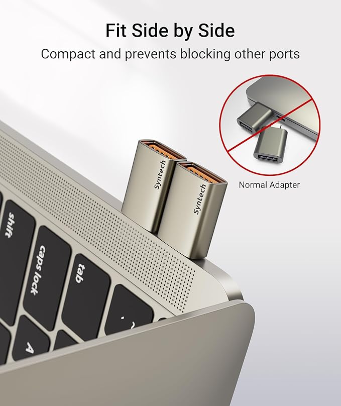 - Fit Side By Side: USB C to USB adapter with a slimmer design fits snugly side by side in a MacBook Pro, allowing simultaneous access to two USB C ports. This adapter is plug and play, requiring no additional drivers. Its compact size makes it an ideal travel companion.