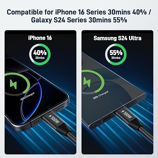 - ใPower All Your DevicesใThis 100W usb c cable backward compatible with 65W/ 60W/ 45W/ 20W devices. Ideal for fast charging high-performance devices such as tablets, and smartphones. ๐๐๐๐๐ญ๐ ๐ญ๐ซ๐๐ง๐ฌ๐๐๐ซ ๐ซ๐๐ญ๐ ๐จ๐ง๐ฅ๐ฒ ๐๐๐๐๐๐ฉ๐ฌ.
