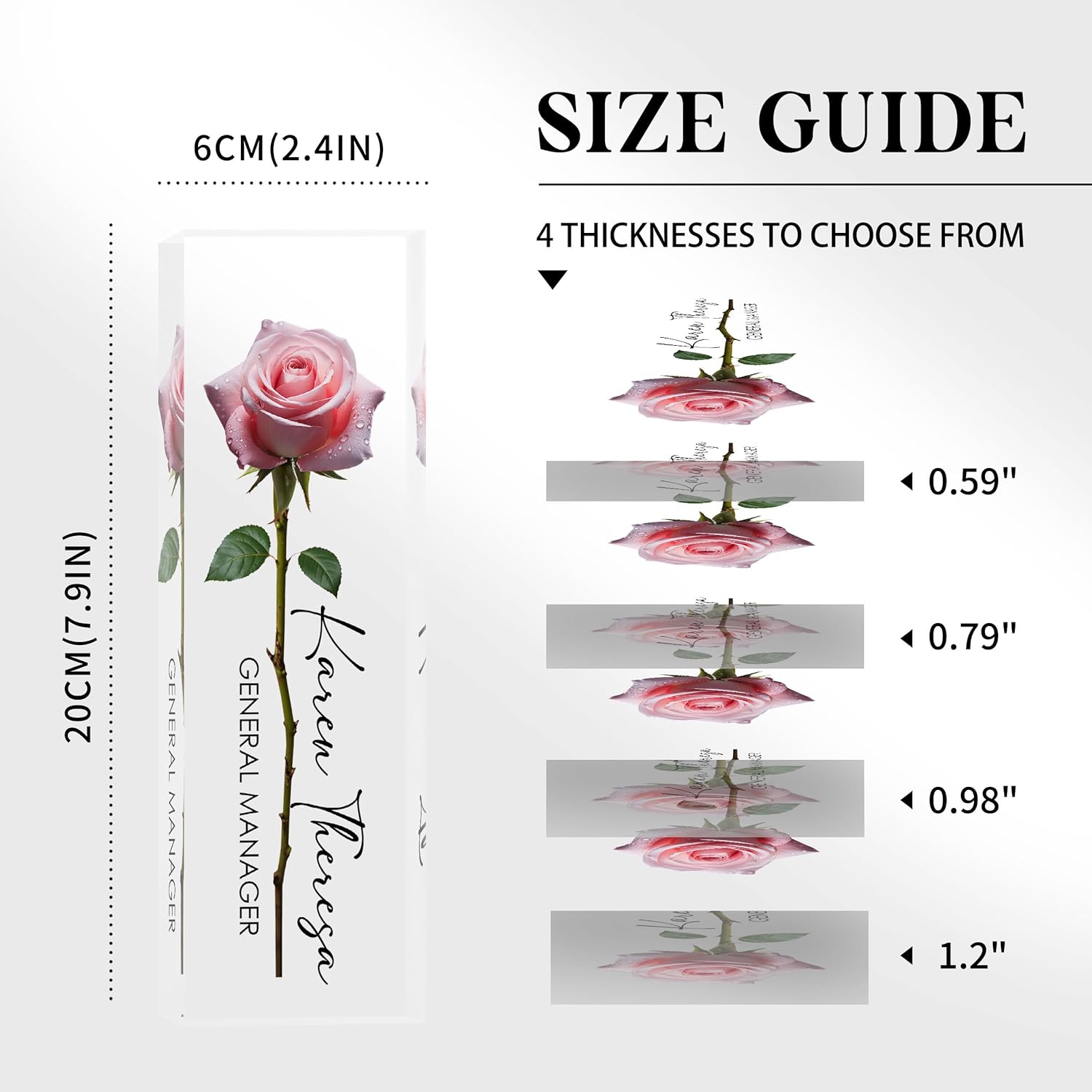 - ๐ High Quality Acrylic - The name plate is made of high-quality transparent crystal acrylic blocks and printed on the back of the name plate using UV HD printing technology. The text and beautiful floral patterns present a 3D stereoscopic effect. The color is bright and will not fade, and can be used for a long time.