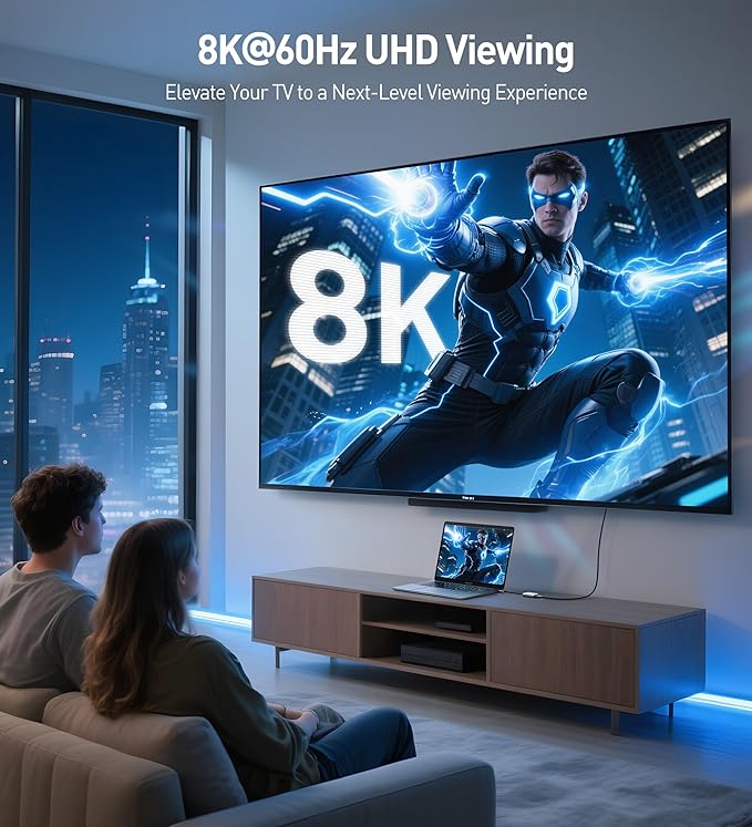 - Stunning Video Resolution: Experience exceptional video quality by connecting 8K or 4K 240Hz gaming monitors and TVs to laptops, smartphones, or tablets equipped with USB-C. The HDMI adapter USB C supports up to 8K 60Hz resolution with RGB 4:4:4 and offers UHD support for 4K at 240Hz, 120Hz, or 60Hz. Enjoy vibrant, lifelike colors with HDR support and Auto Low Latency Mode (ALLM) for a seamless, lag-free gaming experience with no compromise on picture quality.
