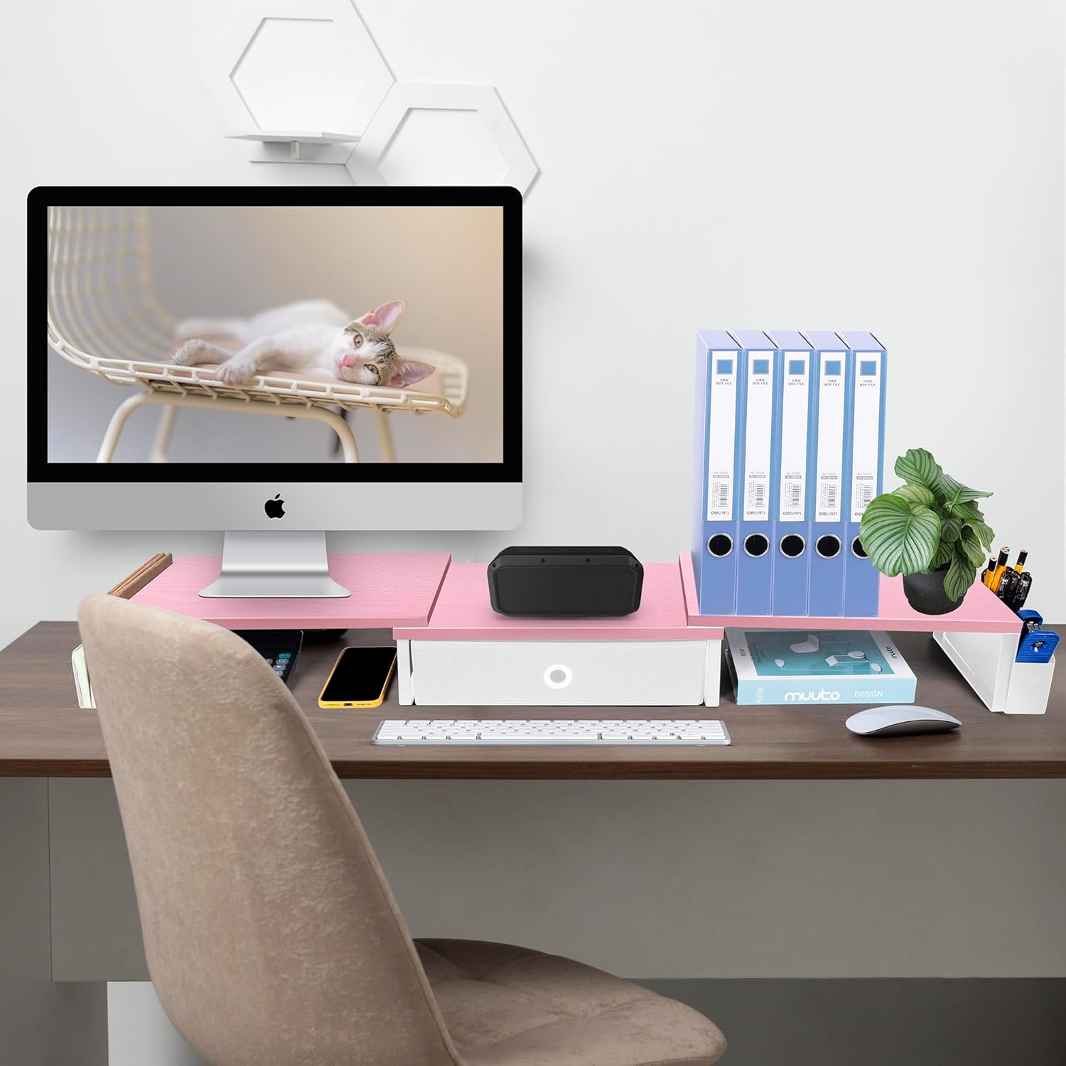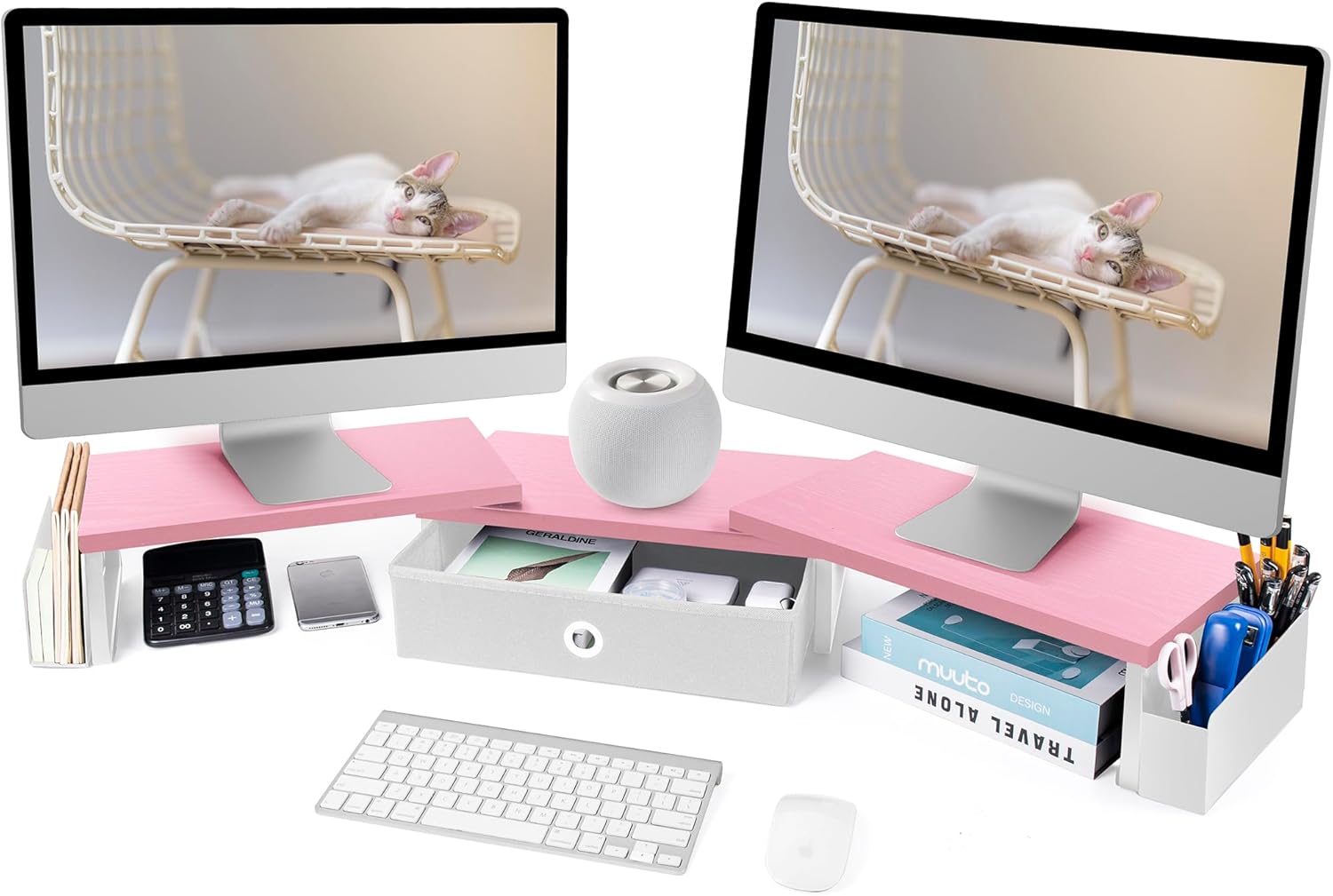 - Color : Pink White-Dual Monitor Riser