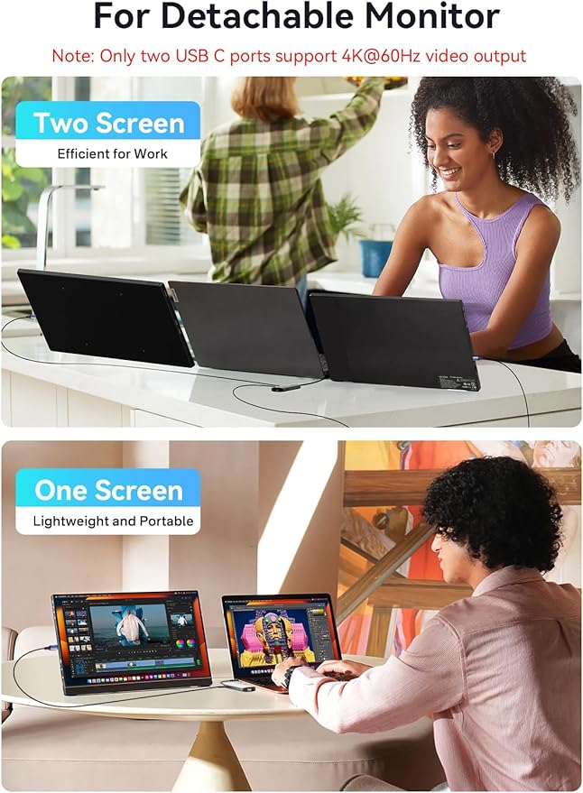 - 【DUAL USB-C DISPLAYPORTS】Dual USB-C display ports support 4K@60Hz extended displays, delivering seamless multi-monitor functionality and high-speed video transmission-no HDMI ports needed. Backward compatible with 1080p@120Hz and 1080p@240Hz.