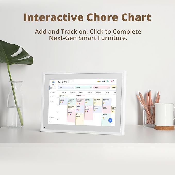 - 【Interactive Chores Chart & Dinner Planner】: Our digital calendar keeps housework organized and motivates family members, especially children, to develop healthy habits with an interactive chore chart. Display your family dinner plans to keep everyone informed and eliminate the daily "What's for dinner?" question.