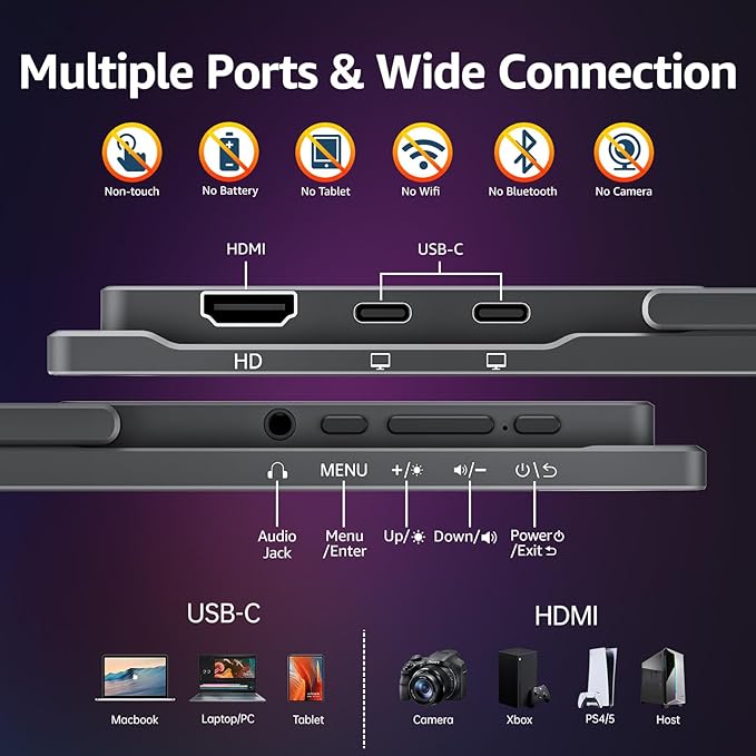 - Plug-and-Play Connectivity: Cocopar external monitor for laptop featuring two USB-C ports and one HDMI port, this monitor easily connects to Macbook, Surface, laptops, PCs, Xbox, PS4/5 and more. Compatible with macOS, Windows, ChromeOS, and supports Thunderbolt 3/4/5 devices with just one original USB-C cable. Enjoy seamless connectivity for a hassle-free experience