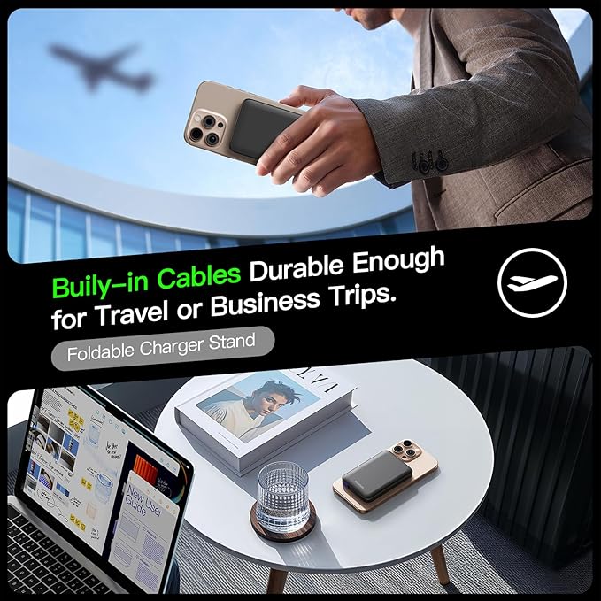 - 【Magnetic Wireless Power Bank】Specially designed for seamless compatibility, this portable charger perfectly supports iPhone 16, 15, 14, 13, and 12 series, including iPhone 16 Plus, 15 Plus, 14 Plus; iPhone 16 Pro, 15 Pro, 14 Pro, 13 Pro, 12 Pro; iPhone 16 Pro Max, 15 Pro Max, 14 Pro Max, 13 Pro Max, 12 Pro Max; and iPhone 13 mini, 12 mini. Attention: We recommend using MagSafe phone cases or not charging with phone cases to obtain sufficient suction for better grip