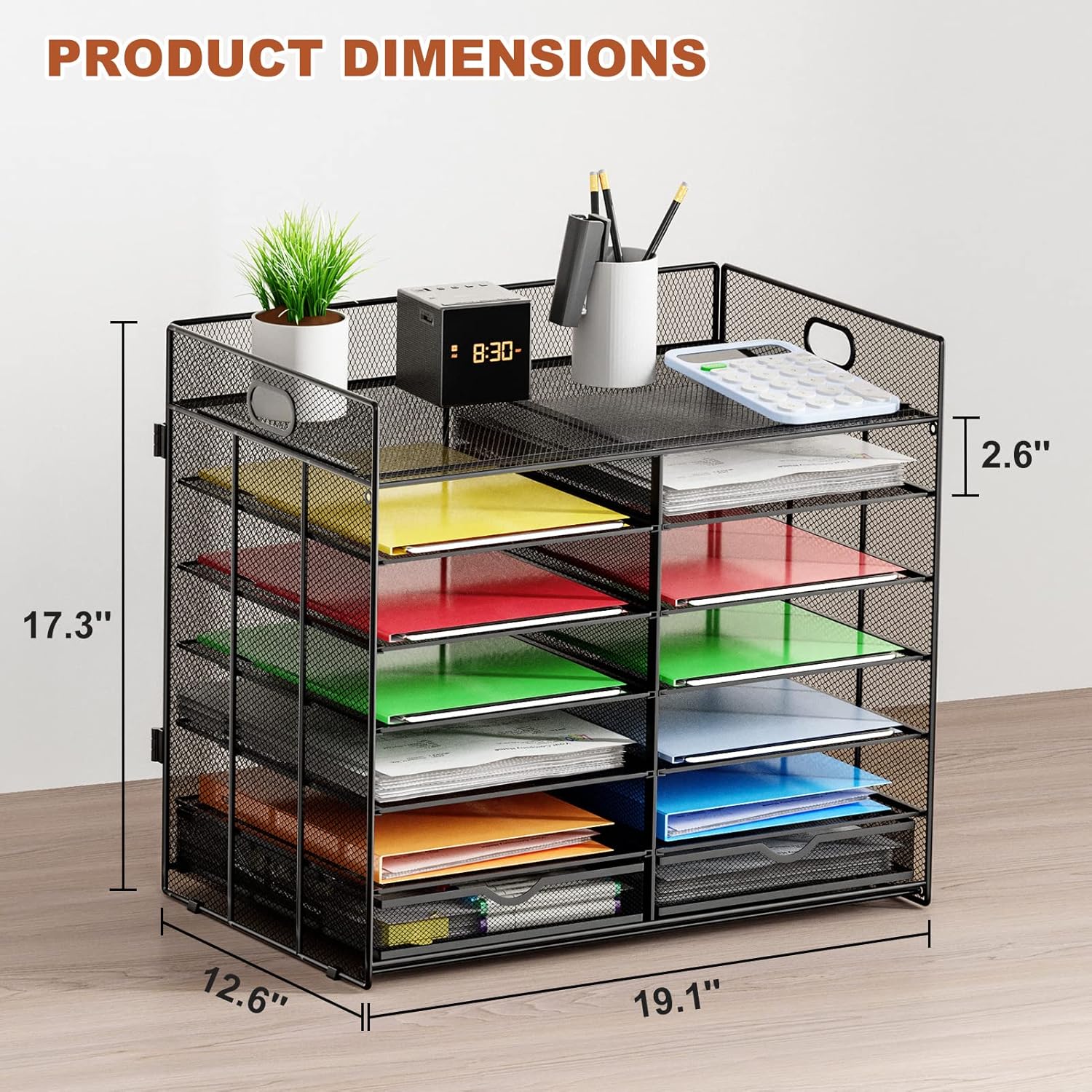 - 【Extra large capacity】Amazing storage capacity and space-saving design. With a total of 13 compartments, it helps you quickly and easily sort, store and organizer literature, magazines, comic books, files, student work, binders, catalogs, diaries, documents and files on your desk or counter, giving you back valuable workspace!