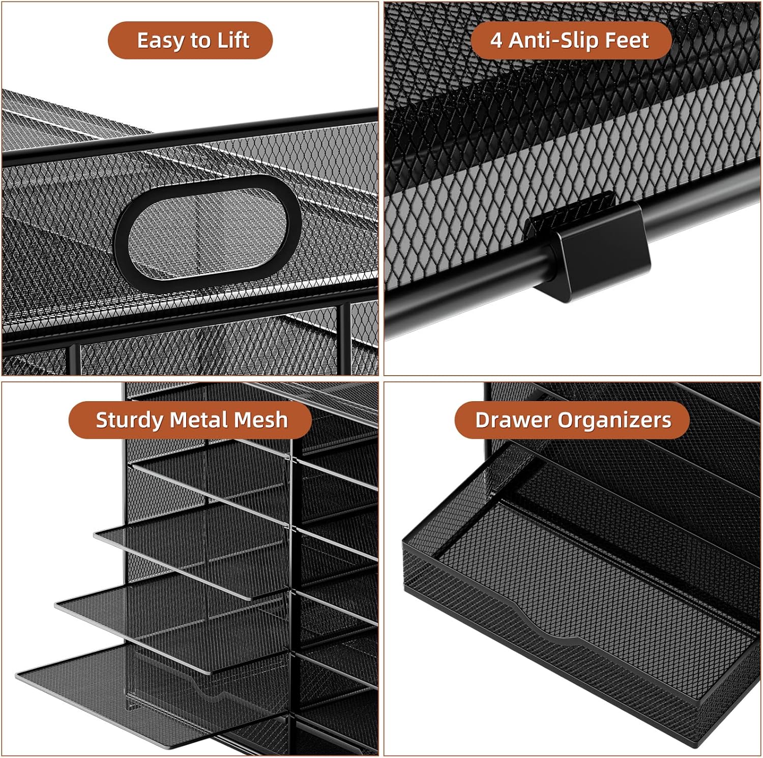 - 【High Quality】The mesh desk file organizer is made of lightweight durable metal mesh and reinforced with a solid steel frame that makes it have long-lasting strength and reliable performance.