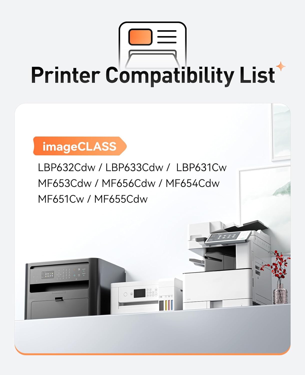 - Compatible Printers: Compatible with Canon imageCLASS LBP632Cdw LBP633Cdw LBP631Cw MF653Cdw MF656Cdw MF654Cdw MF651Cw MF655Cdw laser printers.