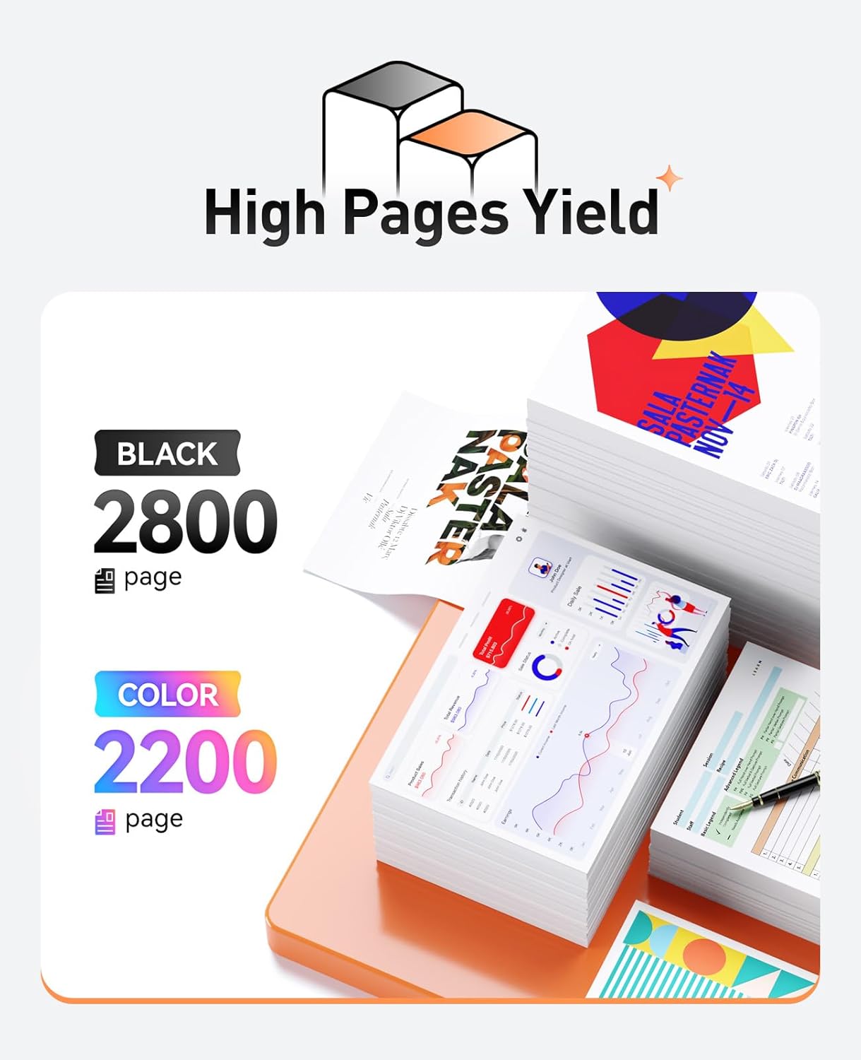 - Yield & Version: 2,800 pages for Black and 2,200 pages Color toner cartridge (A4, 5% Coverage), with High Yield Version 045H.