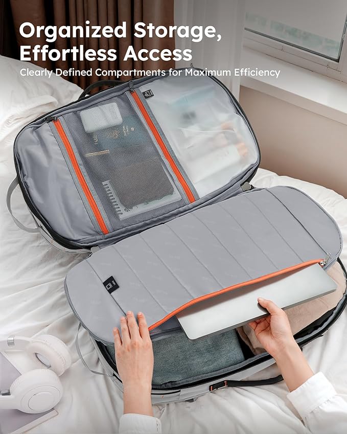 - ✅【Expandable 40L-50L for Any Journey】Expand the 40L travel backpack to 50L with dual-compartment main storage, this travel laptop backpack adapts to your needs from daily commutes to 5-day getaways. Large separate dry-wet compartments keep gym gear, toiletries, or damp clothes neatly organized. Whether you're packing light or loading up, this versatile travel bag ensures everything stays in place, making it your ideal travel companion