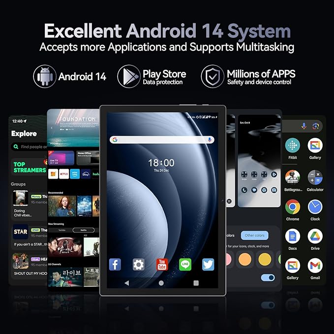 - 【16GB RAM + 128GB ROM + 1TB Expansion】The Tablets for adults 10 inch has 4GB RAM, which can be expanded up to 8GB in the settings. Whether you are playing a game or working on a task,The large expandable memory provides a smoother experience, so you can launch apps quickly and enjoy them without worrying about running out of space. Tablet with keyboard also come with the Google Play Store pre-installed so you can download all the apps you want, such as Netflix/YouTube/Facebook/Twitter, and experience not only the stable Google services, but also the enhanced PC mode for a more convenient experience.