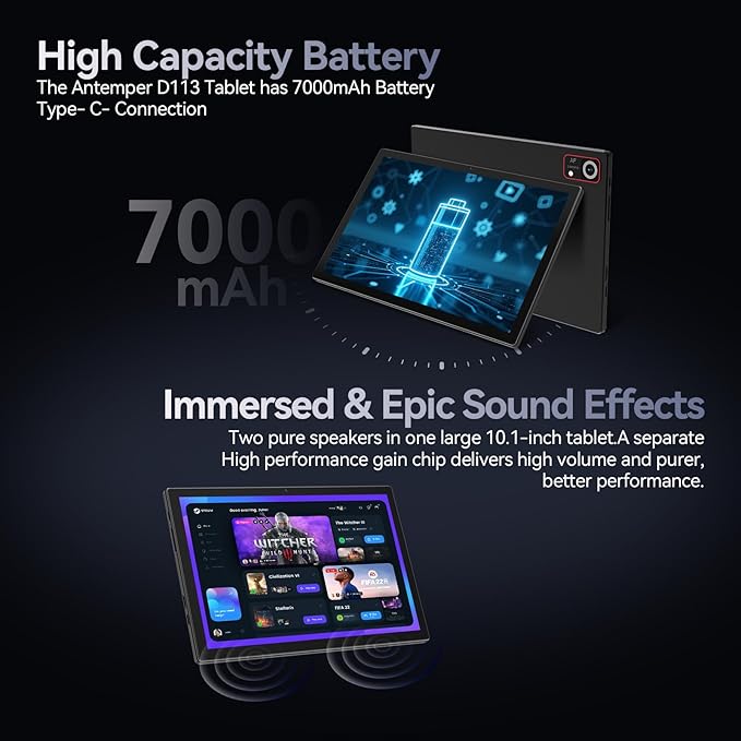 - 【Lager 6000mAH Battery】 ANTEMPER Android computer tablets is equipped with a 6000mAh ultra-large capacity battery, which provides plenty of energy for the tablet to run multiple programs. Android tablet with stylus can be quickly charged through the Type-C connector, and it takes only 1.5 hours to be fully charged under normal conditions, there's plenty of power is available for you to spend the entire day. Note: Battery life depends on device settings and application usage.