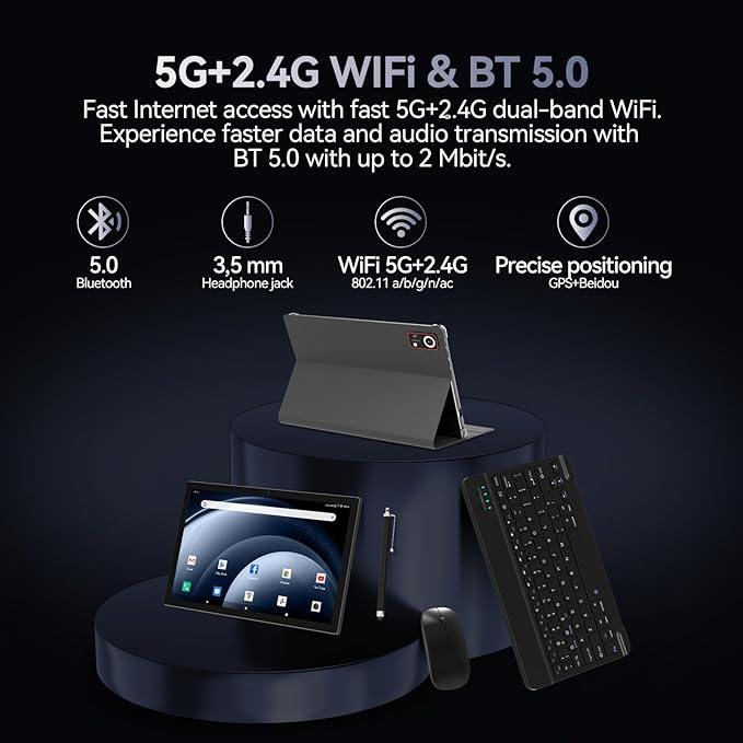 - 【WiFi 5G/2.4G & GPS 】This 10-inch touch screen tablets supports both 5GHz and 2.4GHz Wi-Fi, providing a better network connection with lower latency, stronger signal and faster speed. The built-in GPS ensures you never lose your way, making it an excellent companion for travel and outdoor adventures. It is also the best tablet for friends, parents, children, and colleagues.