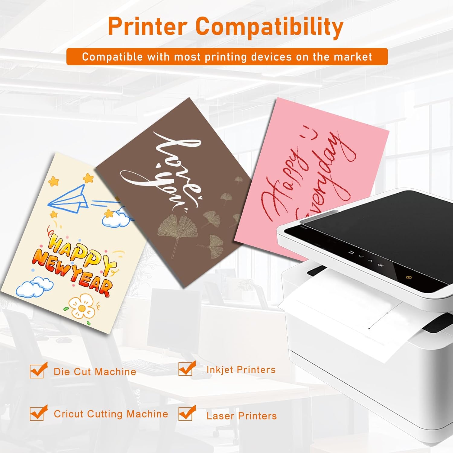 - ▶Printer Compatibility:our thick printer paper card stock is compatible with most types of laser printers, inkjet, die-cutting machines, and cricut cutting machines. Please ensure that your printer can print on 200gsm before ordering