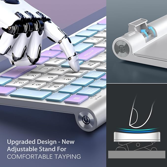 - Ergonomic Bliss & Comfortable Typing – JOYACCESS purple blue wireless keyboard is a dream come true, darling! With its built-in wrist rest and adjustable foldable stand, your hands will thank you as they type away in sweet, effortless comfort for hours.