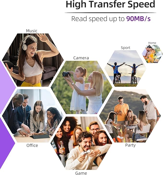 - Versatile Storage Options: Available in capacities from 32GB to 512GB, to diverse storage needs, from HD photos and videos to game data and apps. For instance, the 128GB model can store up to 6 hours of 4K video, 20 hours of 1080P video, 37,600 photos, or 19,440 songs.