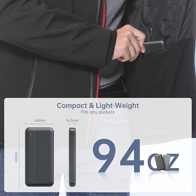 - 【6H Heat & Dual-Device Charging】10000mAh/37Wh battery pack powers heated vests/jackets for up to 10 hours per charge, Dual USB-A ports charge phones/tablets simultaneously