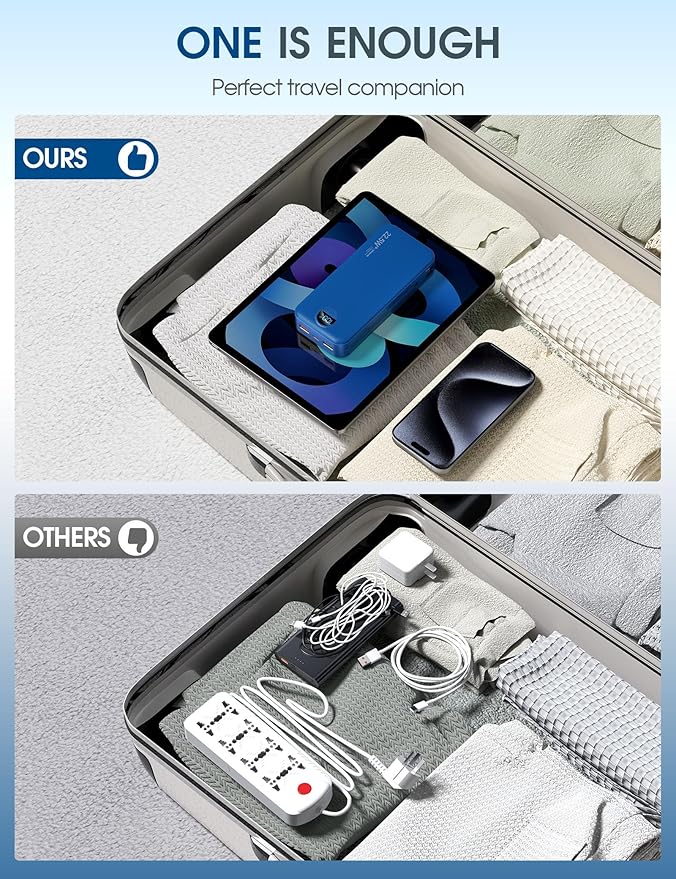 - ใ๐ฉ๐๐๐๐-๐๐ ๐พ๐๐๐ ๐ท๐๐๐ & ๐ช๐๐๐๐๐ ๐๐๐ ๐ผ๐๐๐๐๐๐๐ ๐ท๐๐๐๐๐๐๐๐๐๐ใThe space-saving 90ยฐ foldable AC wall plug make the portable charger eliminates tangled cords with built-in USB-C and iOS cables. Dual USB-A ports and a USB-C port allow you charge 5 devices simultaneously. Travel light, charge freelyโportable charger power bank with no extra cables or adapters needed, just plug and go