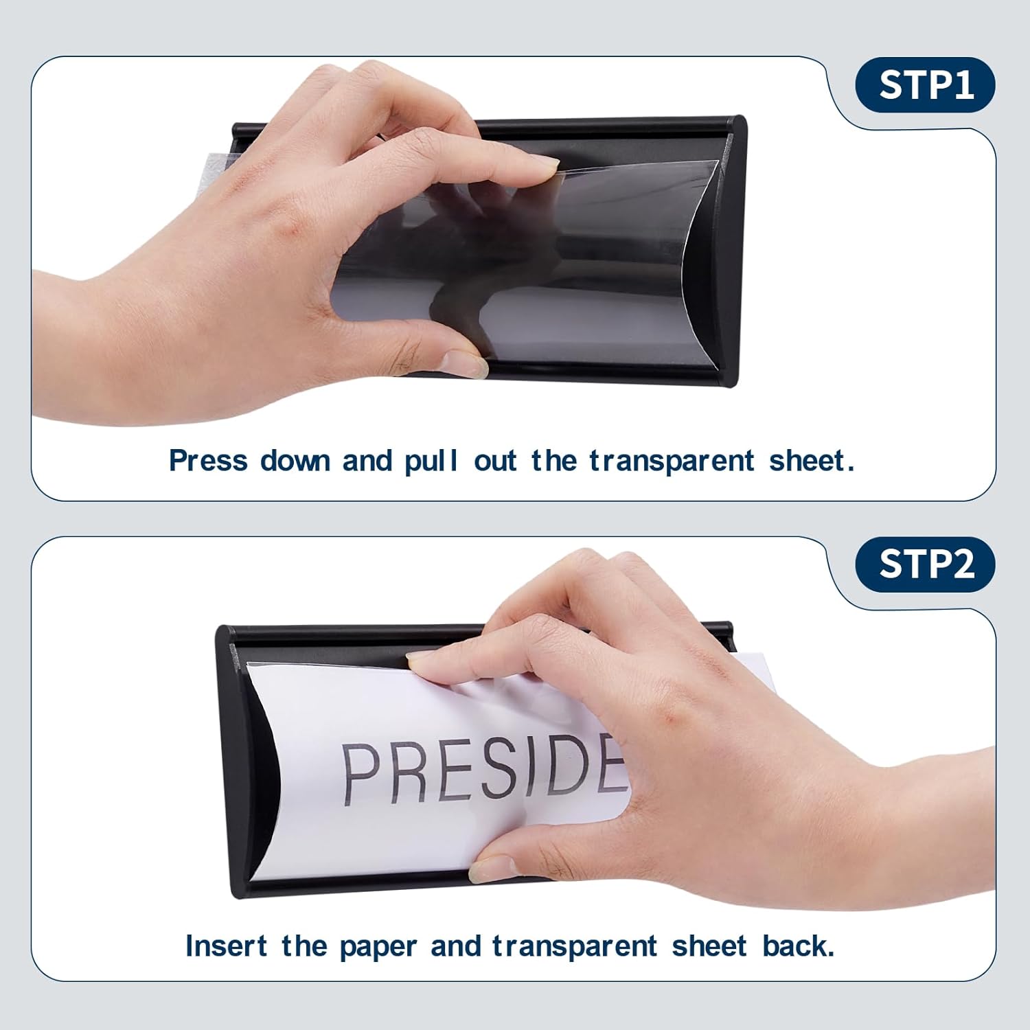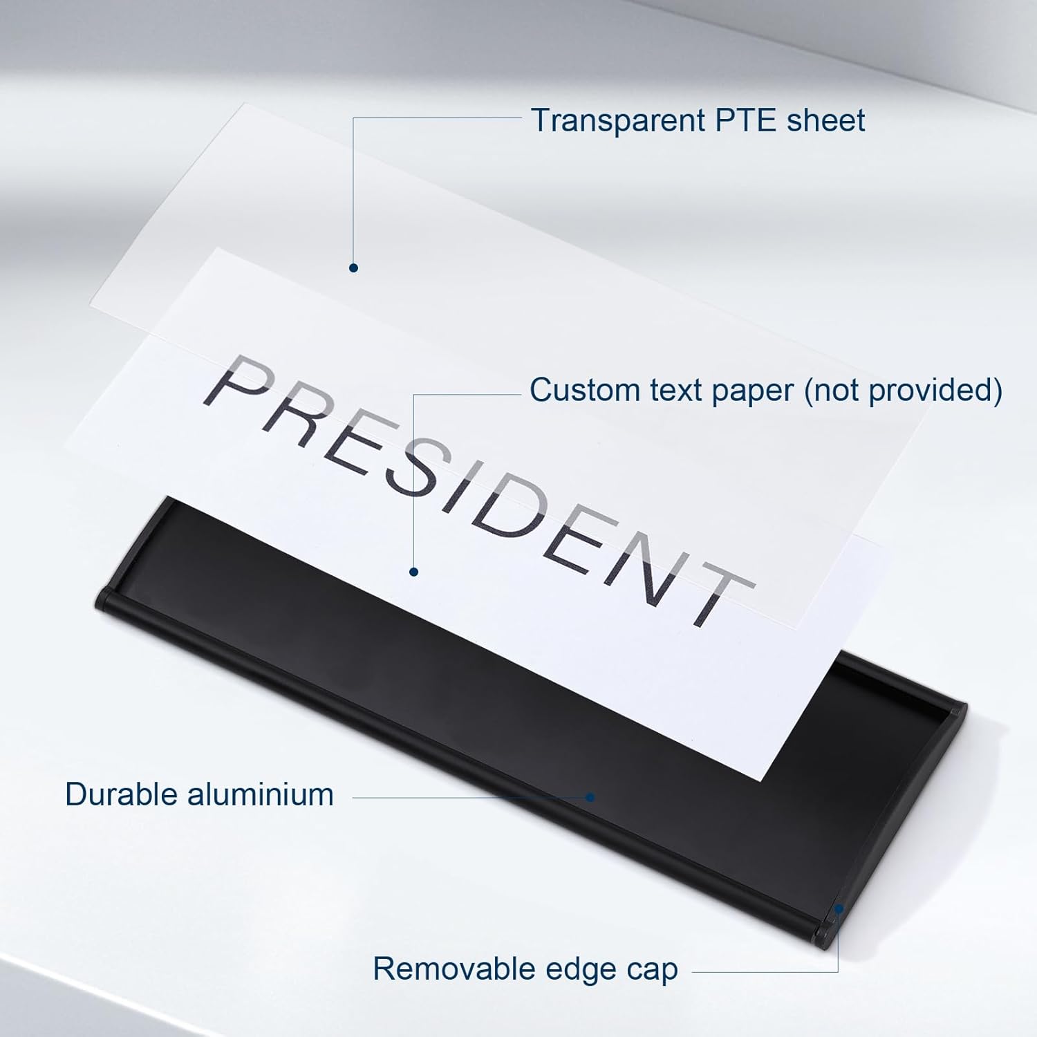- Simple Installation with Secure Adhesion: The door name plate is designed for hassle-free application, ensuring a quick and easy installation process. The lightweight aluminum material is both reliable and durable, while the adhesive tape makes it simple to mount. Just peel and stick the office name plates for wall without worrying about damaging the door.Additionally, this door name plate personalized for office can be easily updated with changeable inserts, making it a versatile option for any office door signs for office.