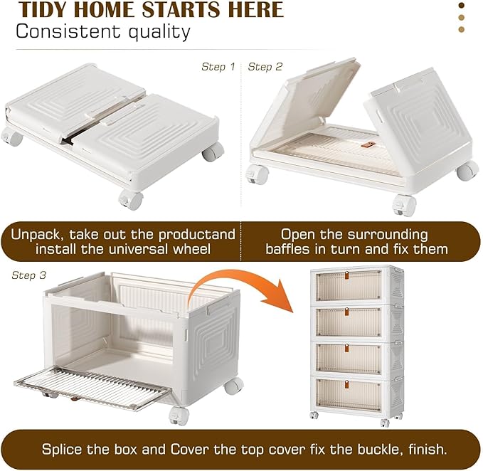 - 【Movable Storage Containers】There are 4 wheels at the bottom of the storage box, which can be easily moved when needed. In addition, the storage organizer's 2 wheels have buckles that keep the wheel in place to prevent it from moving