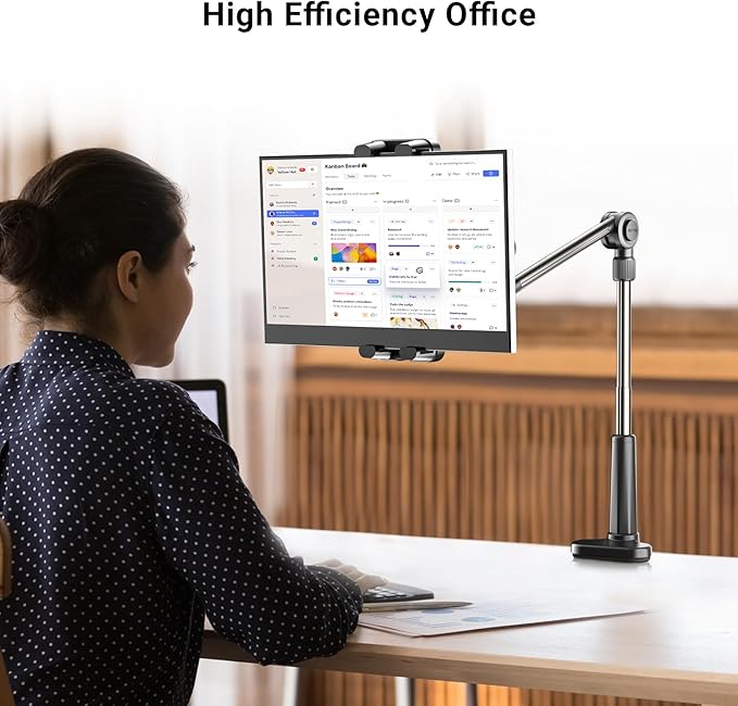 - 【Longer Arm&Sturdy】Holder is made of aluminum alloy, more sturdy and durable, just unscrew the nut, Max stretchable height/length of xxin/xxcm, can be clamped on the bedside, table , office, desk and kitchen. Although it is longer, the thickened arm is also Sturdy