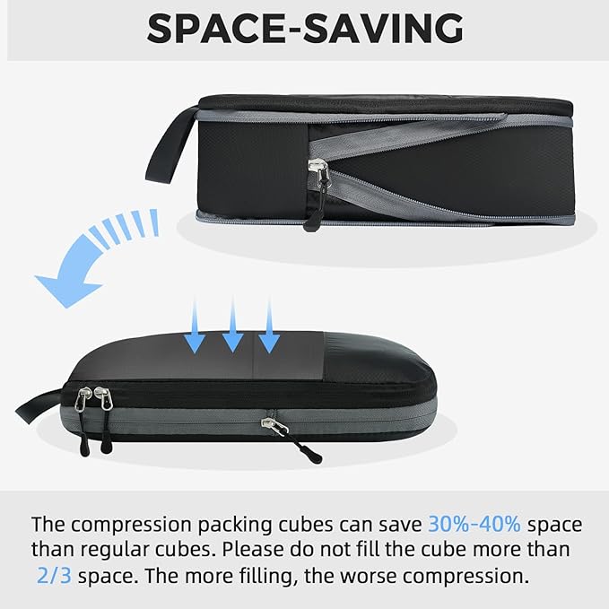 - Space Saving: Save up to 50% space by compressing the packing cubes via the exterior compression zippers; And all the zippers we use are SBS zippers, it makes sure the packing organizers could be opened and closed easily
