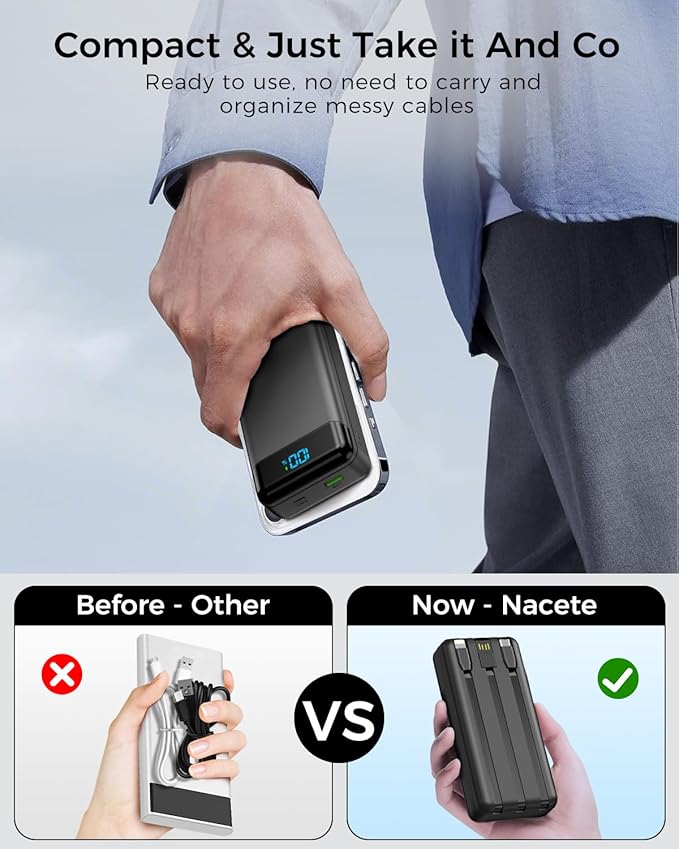 - Special Feature : Built In 3 Cables (USB-C, iOS, USB-A), Digital Display, Portable Travel Charger, Support PD 22.5W Fast Charging&20W Recharging, 40000mAh Huge Power to Go, 4 Output 3 Input, Auto Shut-Off, Over Charging Protection, LED Indicator Light Built In 3 Cables (USB-C, iOS, USB-A), Digital Display, Portable Travel Charger, Support PD 22.5W Fast Charging&20W Recharging, 40000mAh Huge Power to Go, 4 Output 3 Input, Auto Shut-Off, Over Charging Pro… See more