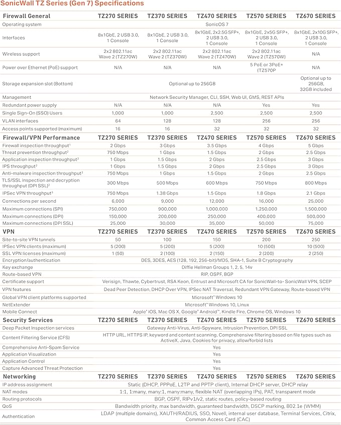 - Designed for small, mid-sized organizations and distributed enterprise with SD-Branch locations, the 7th generation (Gen 7) TZ series delivers industry-validated security effectiveness with best-in-class price- performance. These NGFWs address the growing trends in web encryption, connected devices and high-speed mobility by delivering a solution that meets the need for automated, real-time breach detection and prevention.