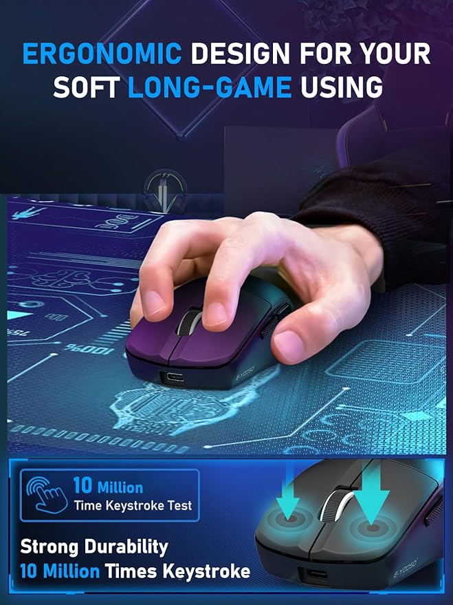- [Ultra-Light 50g Ergonomic Design]: Built for marathon gaming and long workdays, our featherlight gaming mouse reduces wrist strain with a contoured grip and smooth PTFE feet for effortless gliding across any surface