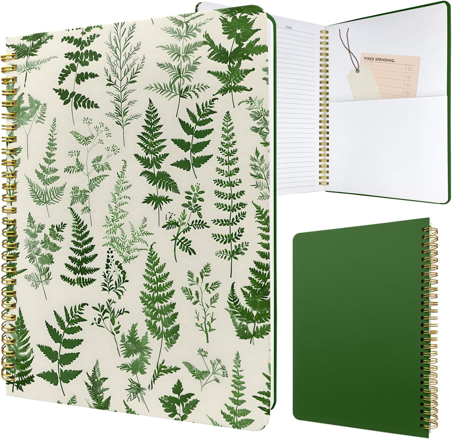 Cute Spiral Notebook journal B5 Aesthetic Pretty Design for Women Girls Kawaii with Pocket, 10 x 7.2 inch, Lined, Green Plants