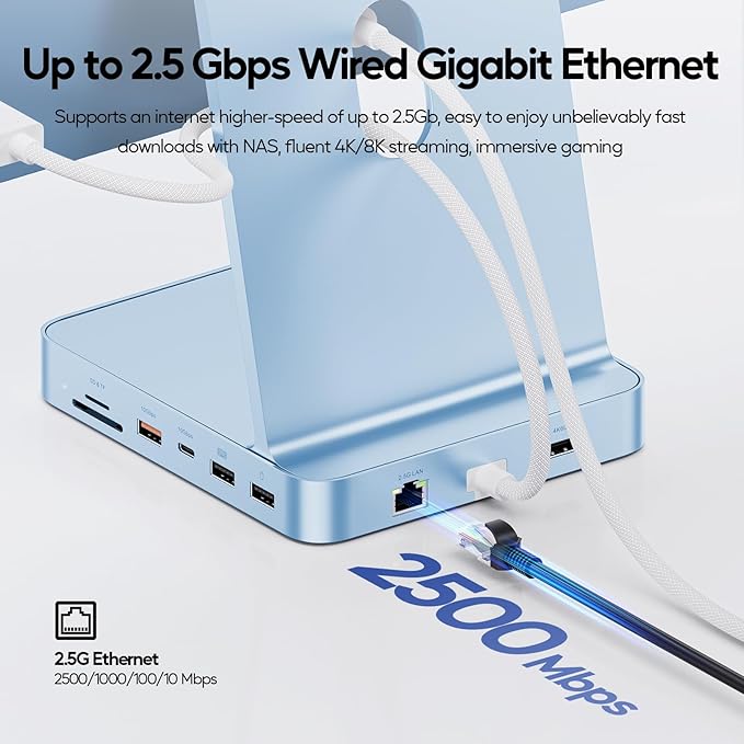 - 4K HDMI HD OUTPUT & 2.5G WIRED ETHERNET - HDMI output up to 4K@60Hz, the imac usb hub with HDMI is easy to mirror or extend your imac 24 inch M1 M3 M4 to a larger HDTV, monitor or projector to improve your work effiency and elevate your movie or gaming experience. A wired gigabit ethernet port up to 2.5 Gbps enables fast, steady network connection for full HD movies, 3D video games, online meetings, entertainment, etc. β NOTE: The imac hub MUST connect to one of iMac's Thunderbolt ports to extend external display