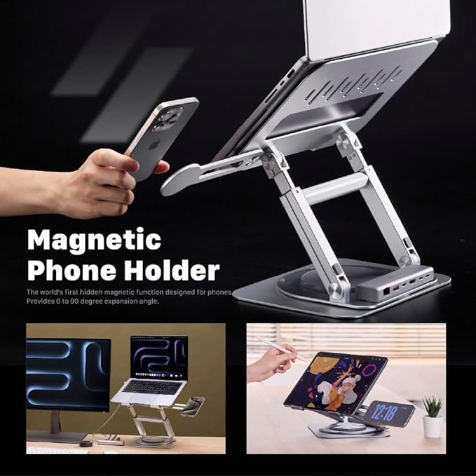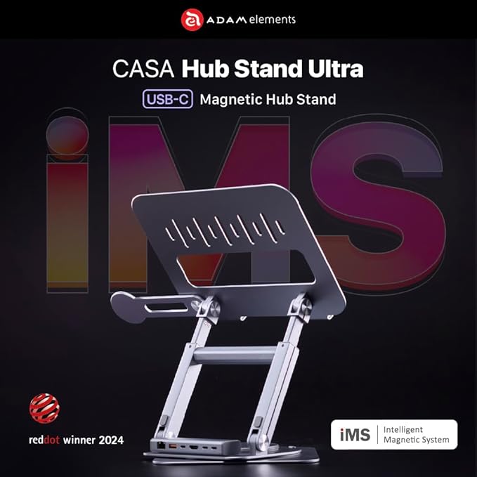 - Intelligent Magnetic System (iMS) features an easy-to-remove magnetic hub system and cellphone stand, offering versatility for home use or on the go. The stand can expand, with the height extending from 53mm to 420mm. Specially designed for MacBooks, the Hub Stand Ultra combines an adjustable stand with USB-C hub functions for comfort and convenience.