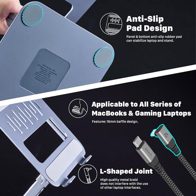 - A sleek, lightweight, and durable all-aluminum design enhances your iPad experience. Its perforated stand plate efficiently dissipates heat and reduces weight. Extended silicone rubber pads on the surface and bottom provide added friction for the stability and safety of the laptop and the stand.