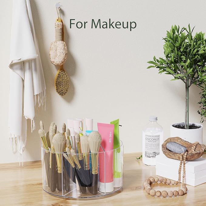 Desk Pen Holder, 360 Degree Acrylic Rotating Pencil Organizer for Kid Crayon Marker, Office Supply Accessory Organizer Rotating Organization for Desktop, Kitchen, Makeup, Vanity