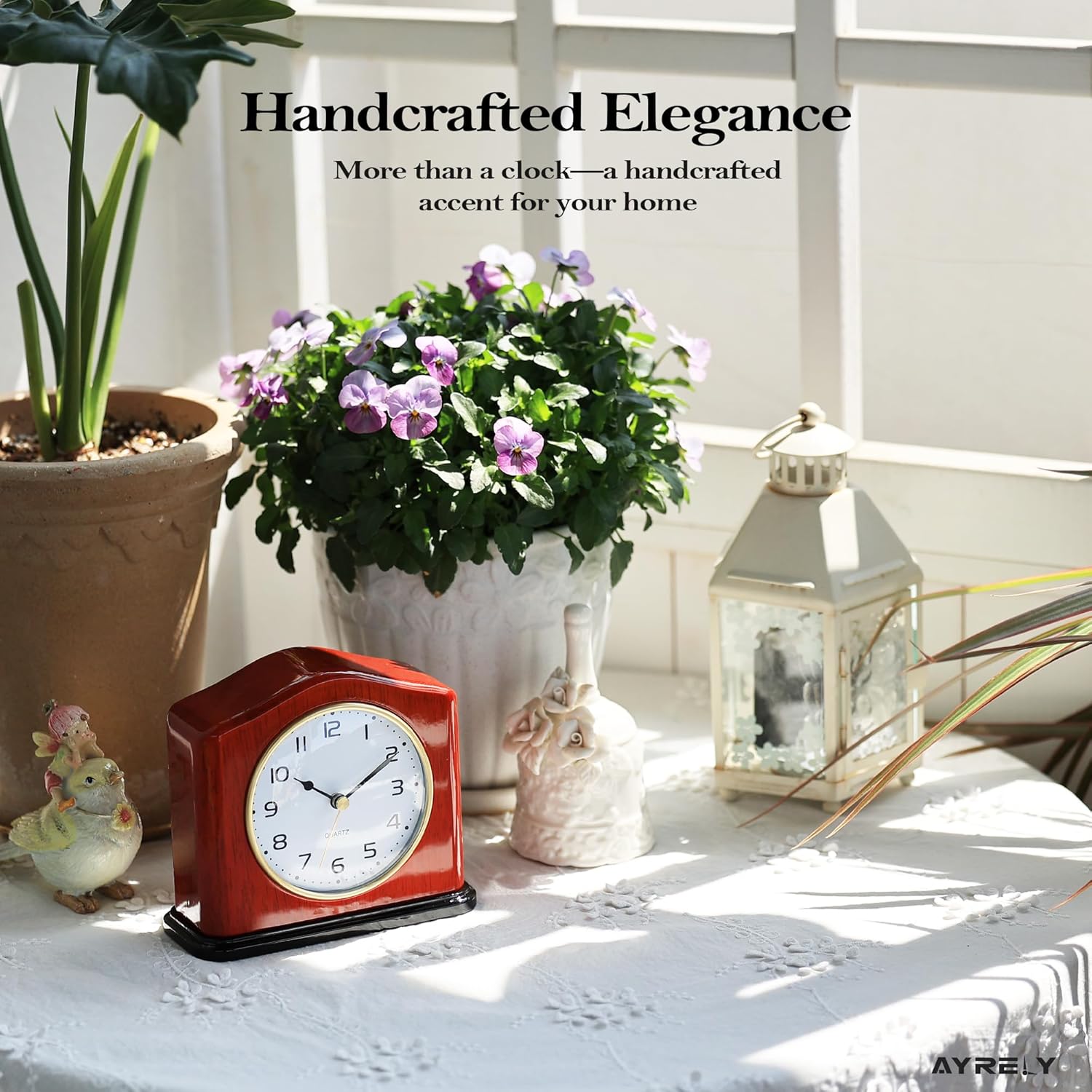 AYRELY® Mantel Clock, Handcrafted Solid Wood Desk Clock with Silent Movement, Piano-Gloss Finish, Elegant Table Clock for Fireplace, Bedroom, Office & Gifts