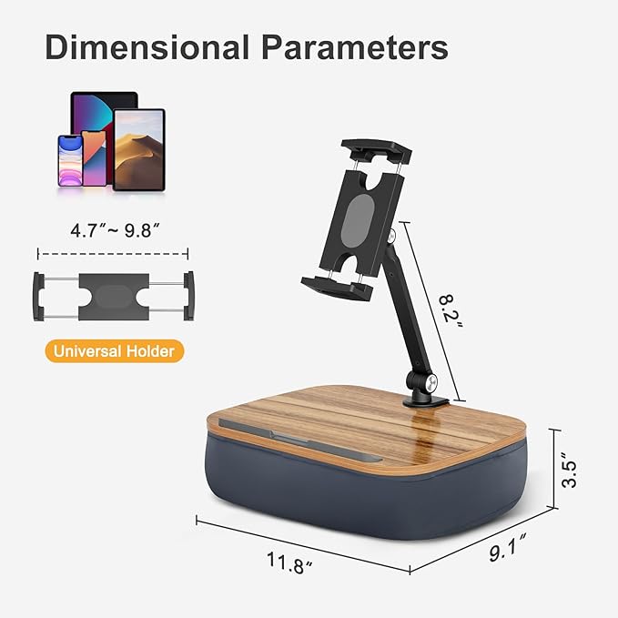 - 【VERSATILE USAGE】 This product functions as both a tablet holder and a lap desk. Attach the arm for tablet use or remove it for a cozy lap desk on the bed or sofa.