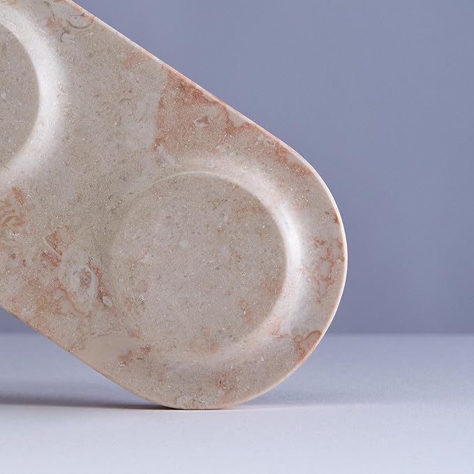 Einova Dual Classic Stone – Dual Wireless Charging Pad in Genuine Marble, Designed in Italy, Qi Certified, for Smartphones, Wireless Earbuds & More – Cream Marble