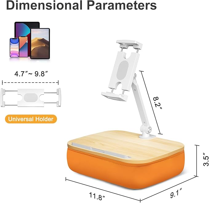 - 【VERSATILE USAGE】 This product functions as both a tablet holder and a lap desk. Attach the arm for tablet use or remove it for a cozy lap desk on the bed or sofa.