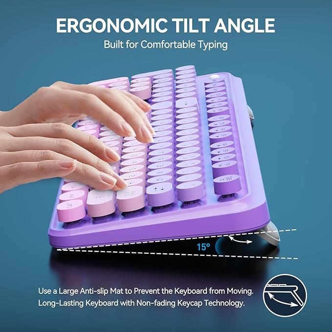 FD Wireless Keyboard and Mouse Combo - 2.4G Full-Sized Cute Colorful Mouse and Keyboard with 104 Round Keys Retro Typewriter Keyboards for Laptop/Windows/PC - Purple Gradient