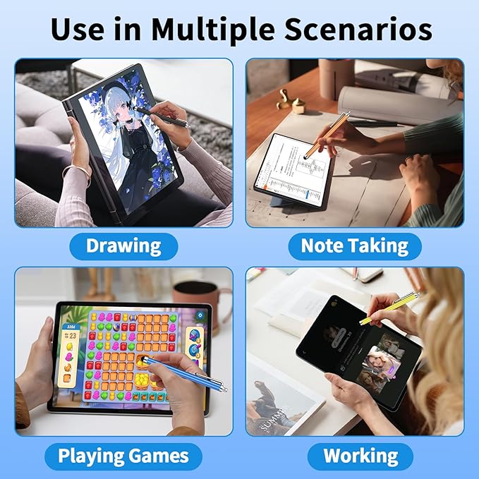 - Universal Stylus Pen: This stylus is compatible with capacitive touch screen devices, suitable for iPad, iPhone, Android phones, tablets and other devices, to meet all kinds of daily touch needs.